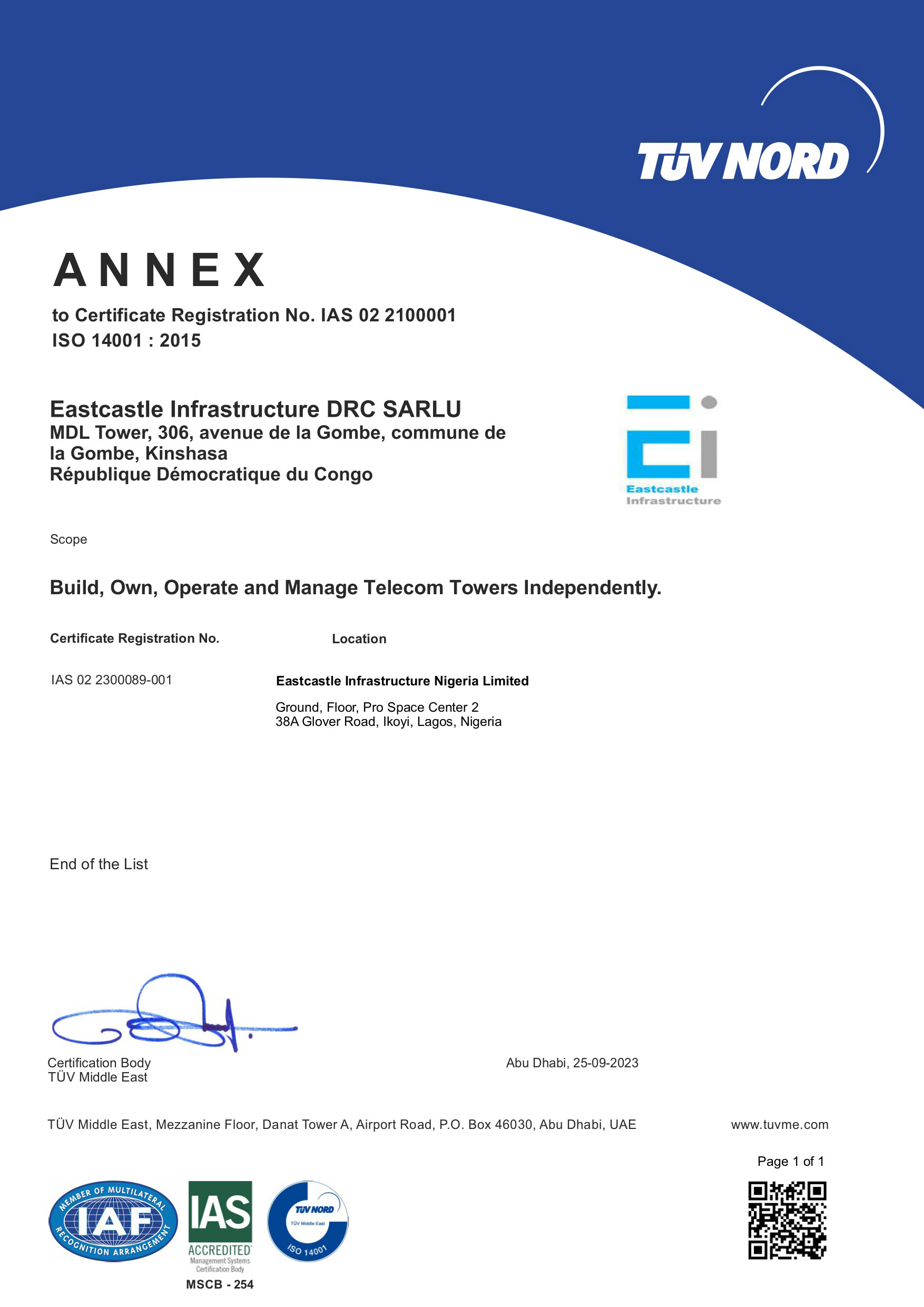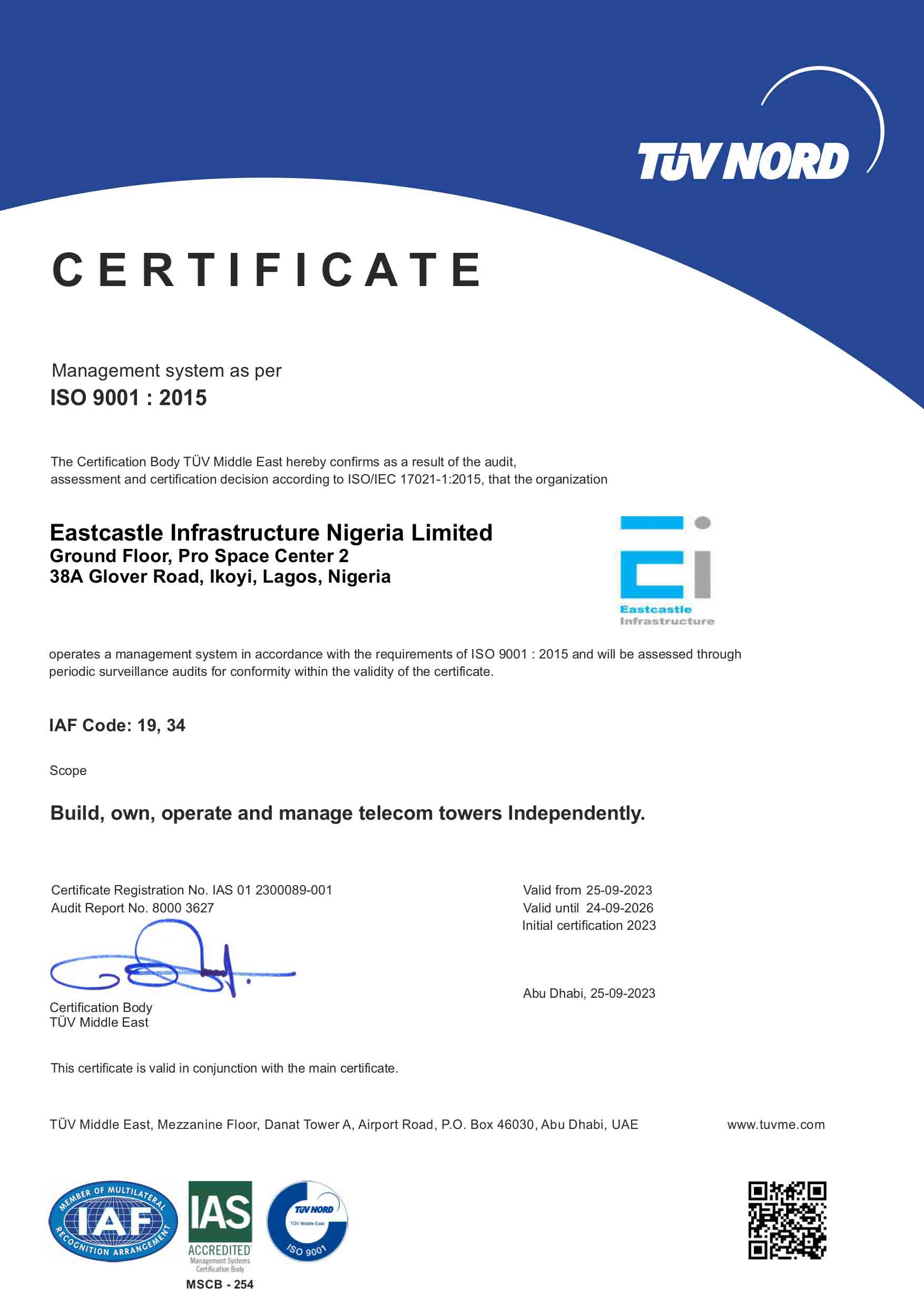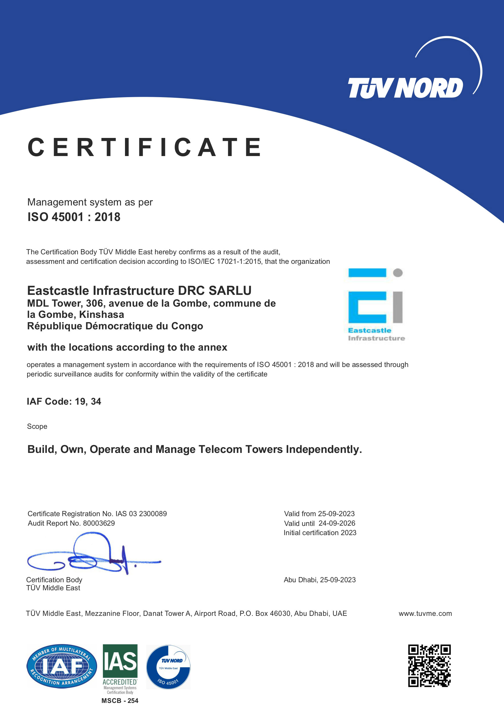 Operating with ISO 9001, 14001, 45001 and GHG IS-14064 Certifications
